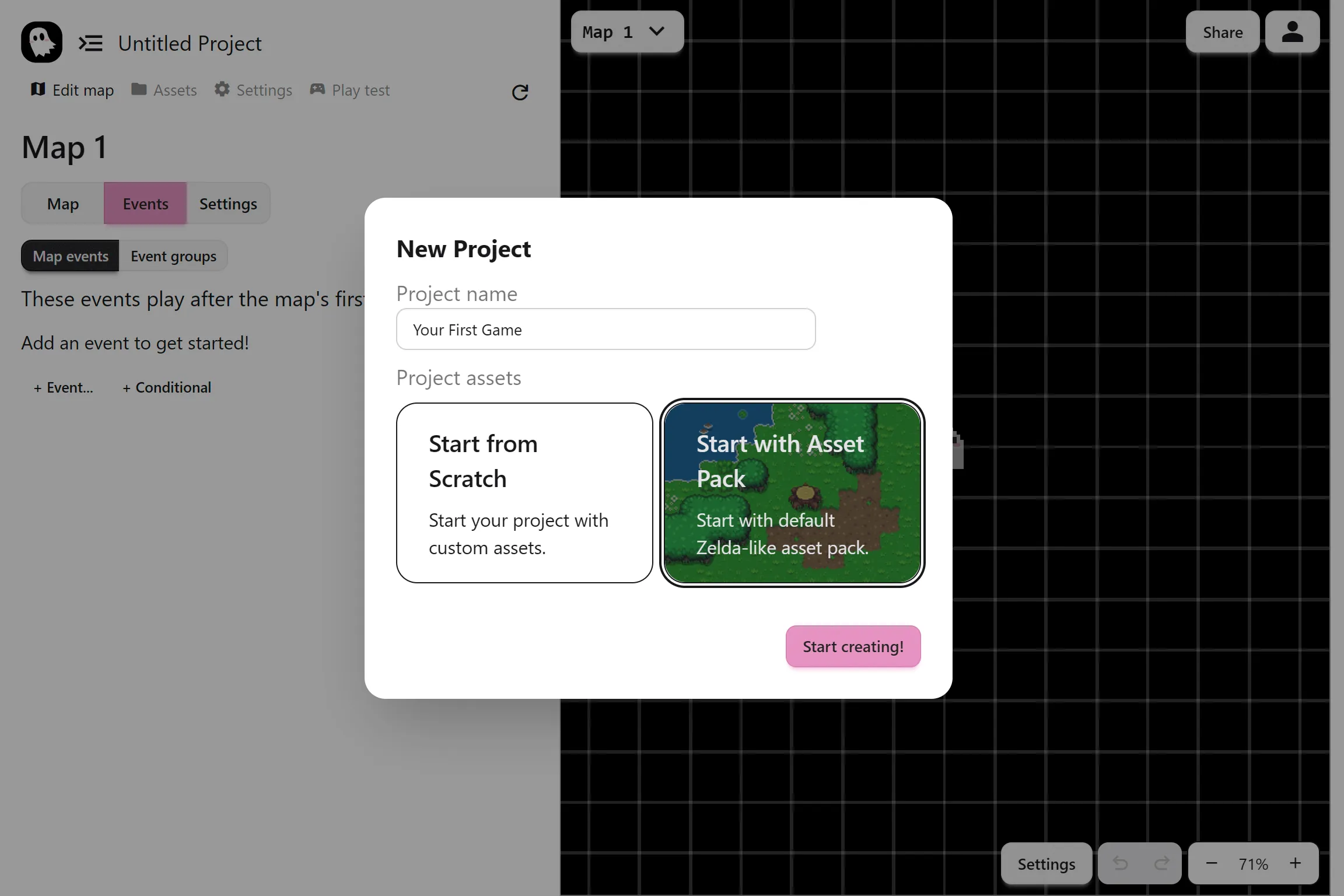 Have fun building maps, exploring the event system, and creating stories that are uniquely yours!
