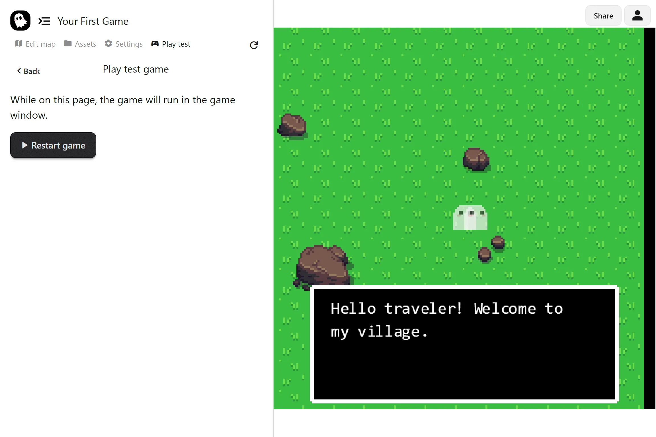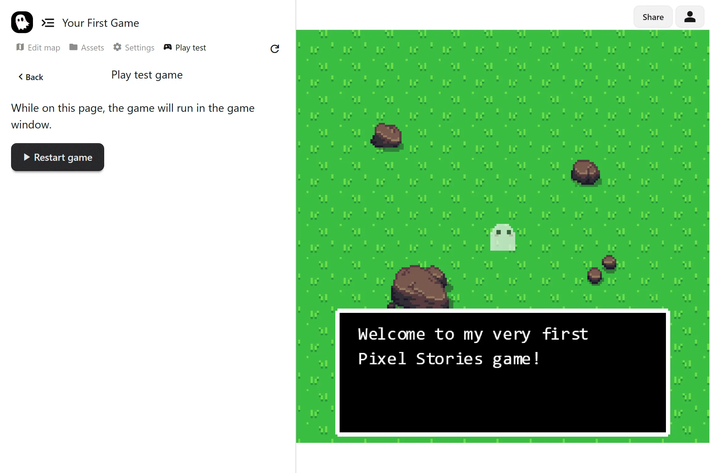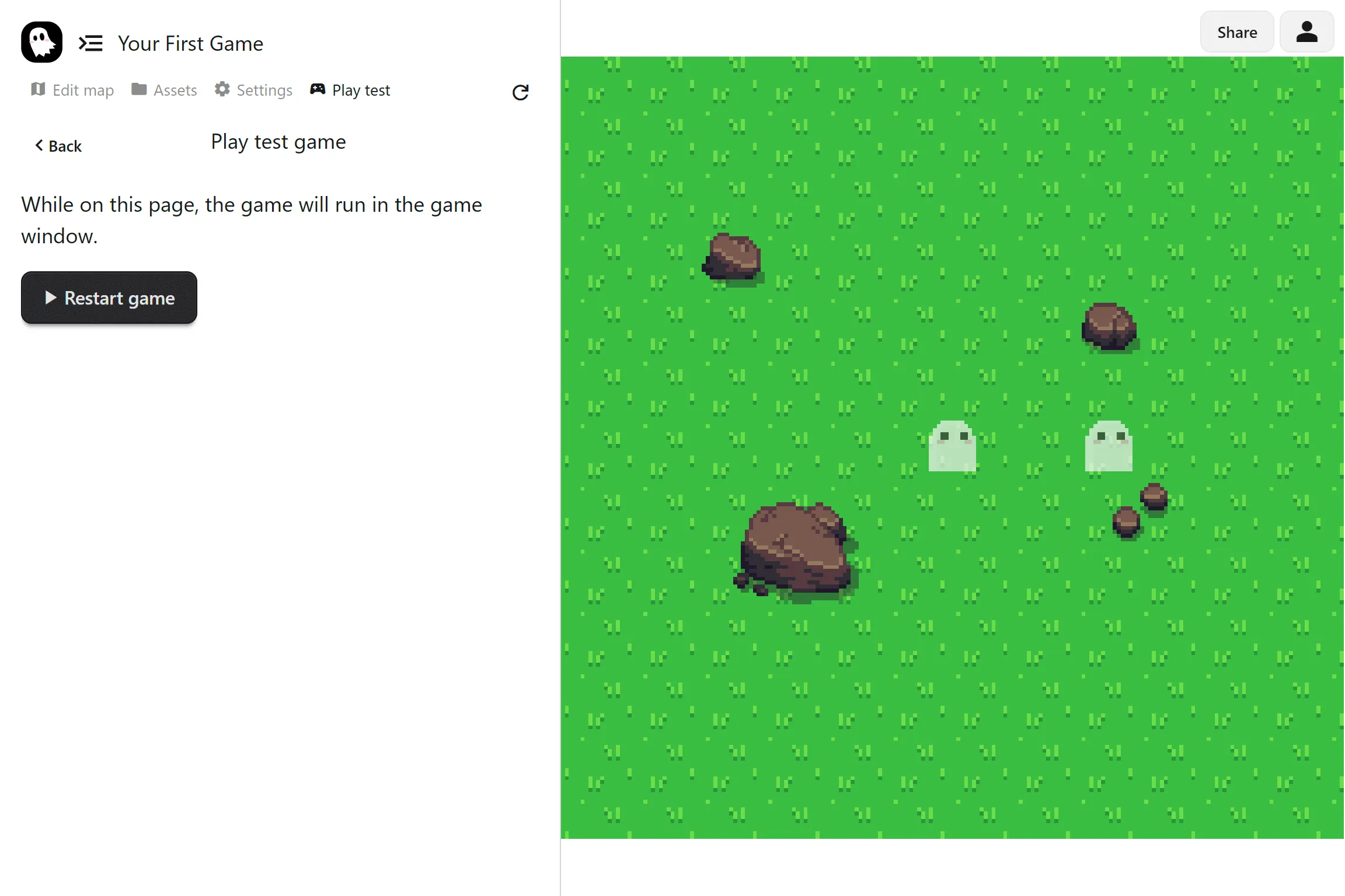 Section titled “Sharing Your Game”Click Share at the top right to copy a link. Send it to friends so they can play your creation instantly in their browser.