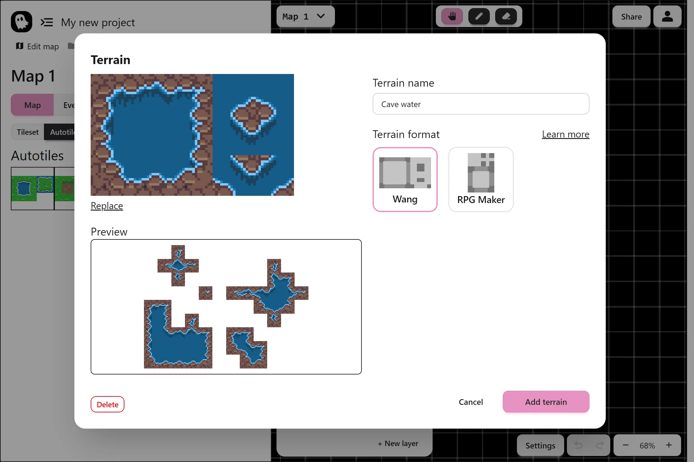 Section titled “Adding Autotiles”You can add autotiles in two ways: