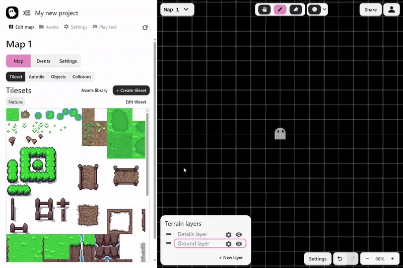 Tilesets are the backbone of your maps. They provide the basic terrain: grass, dirt, water, walls, and other repeating pieces that form the world. By combining tilesets with autotiles, you can build environments that feel alive and consistent.